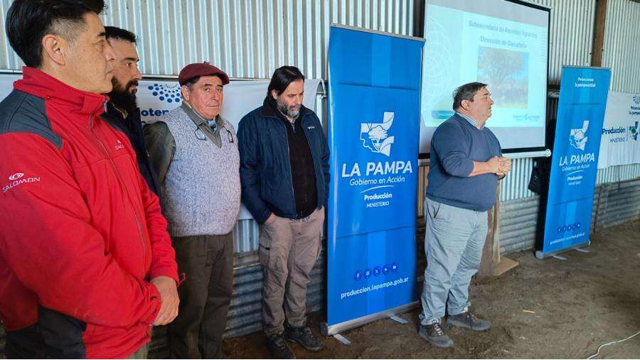 La actividad estuvo encabezada por los directores de Ganadería, Marcelo Lluch y de Recursos Naturales, Carlos Bonnemezón, personal técnico del Ministerio de la Producción, referentes de cada una de las instituciones colaboradoras y un marco importante de 140 productores de diferentes zonas de La Pampa como así también del sur de San Luis.