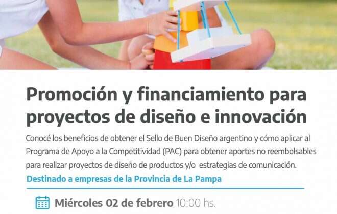 El Ministerio de la Producción de la Provincia, a través de la Dirección de Desarrollo Industrial invita a participar de la Jornada de Difusión y Promoción de Líneas de Financiamiento y Promoción de Proyectos de Diseño e Innovación organizada por el Ministerio de Desarrollo Productivo de Nación.
