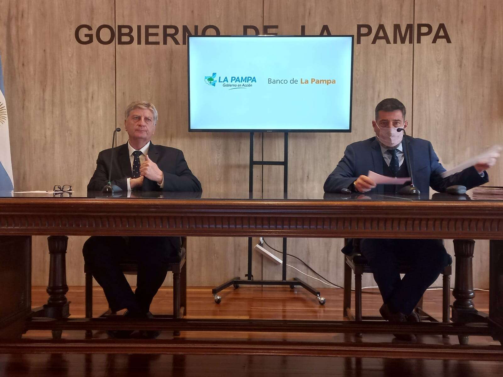 El gobernador de La Pampa, Sergio Ziliotto, junto al Presidente del BLP, Alexis Iviglia, anunciaron el lanzamiento de dos herramientas para reactivar el consumo interno.