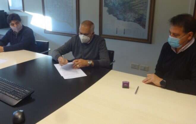 En la oficina del ministro de Obras y Servicios Públicos, Juan Ramón Garay, y con la presencia del administrador de Administración Provincial del Agua (APA), Fabricio González Martín y el intendente de Uriburu, Pascual Fernández se firmó un convenio en el marco del Programa PROPAyS.