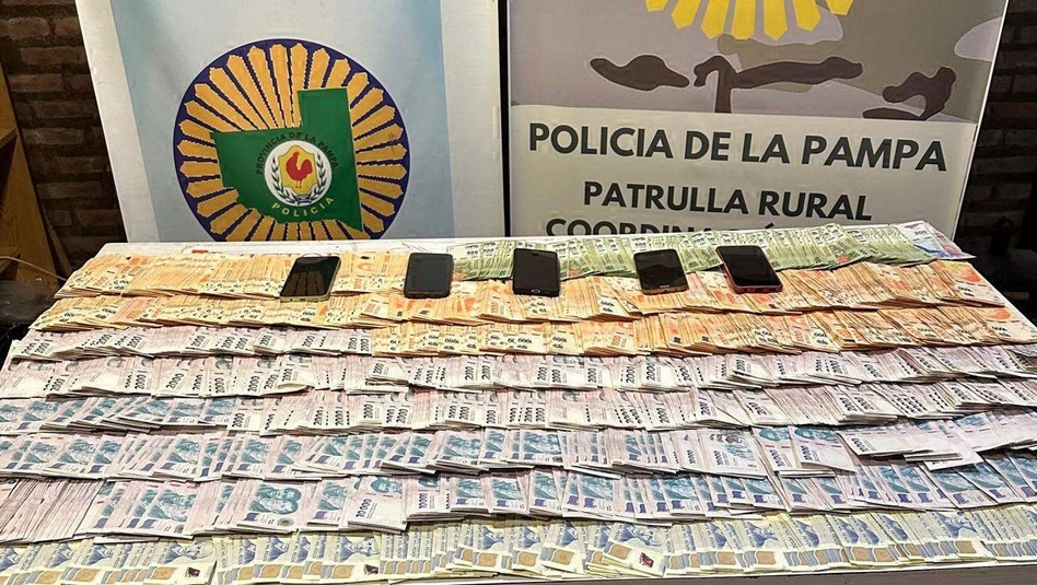La fiscal Virginia Antón, del Ministerio Público Fiscal de la III Circunscripción de General Acha, señaló que al detectar movimientos cerca del rodado, la Policía aprehendió a tres hombres que salían de un campo. No se hallaron armas, pero sí dinero en efectivo entre sus ropas y en dos mochilas, sumando aproximadamente 10 millones de pesos. En el vehículo se secuestraron otros dos millones.