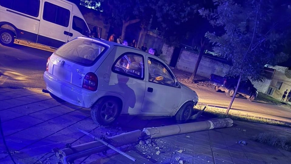 El hecho ocurrió pasadas las 23.30, cuando un llamado al Cecom alertó sobre el accidente. Al llegar al lugar, efectivos policiales constataron que un Chevrolet Corsa blanco se encontraba sobre la vereda, con importantes daños en su parte delantera, y que una columna de cableado eléctrico había quedado derribada.