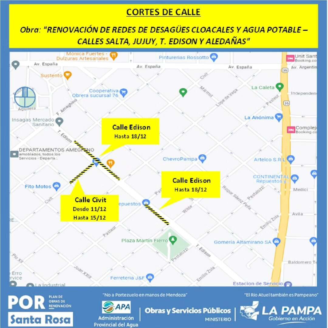 Los trabajos corresponden a la obra de renovación de redes de desagües cloacales y agua potable ”“ Calles: Salta, Jujuy, Avenida Thomas Edison y zonas aledañas. Adicionalmente se realizó una campaña de difusión e información de manera de anticipar a los vecinos frentistas y transeúntes las tareas que se desarrollarán. Para la materialización del desvío…