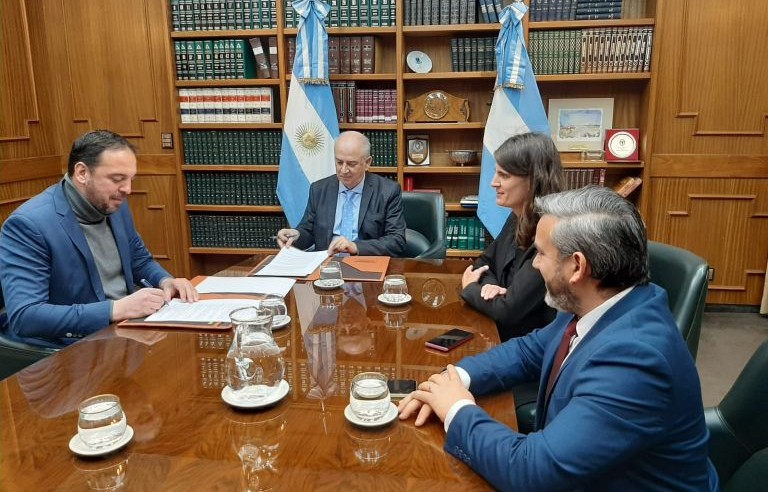 El texto fue rubricado por el presidente del STJ, Eduardo Fernández Mendía, y el intendente Luciano Di Nápoli, en un acto desarrollado en el Salón de Acuerdos del Tribunal, y se enmarcó en la ley 3135, referida a al Régimen de bienes secuestrados en causas penales.
