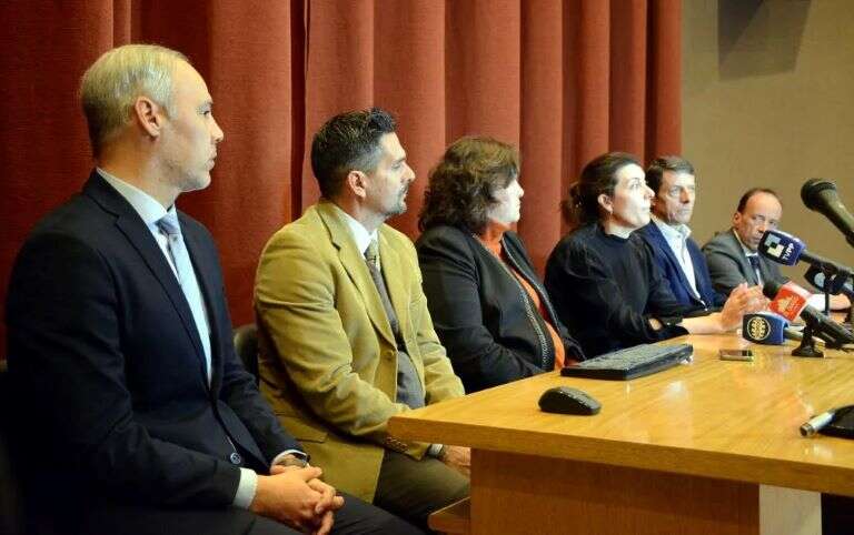En la conferencia brindada, en el auditorio del Ministerio Público, estuvieron presentes la fiscal Cecilia Martiní; el ministro de Seguridad Horacio di Nápoli; el ministro de Gobierno, Justicia y Derechos Humanos y candidato a diputado nacional Ariel Rauschenberger; la secretaría de la Mujer, Género y Diversidad, Liliana Robledo; y el subsecretario de Derechos Humanos Juan Pablo Fasce. También el fiscal general de Santa Rosa, Máximo Paulucci.
