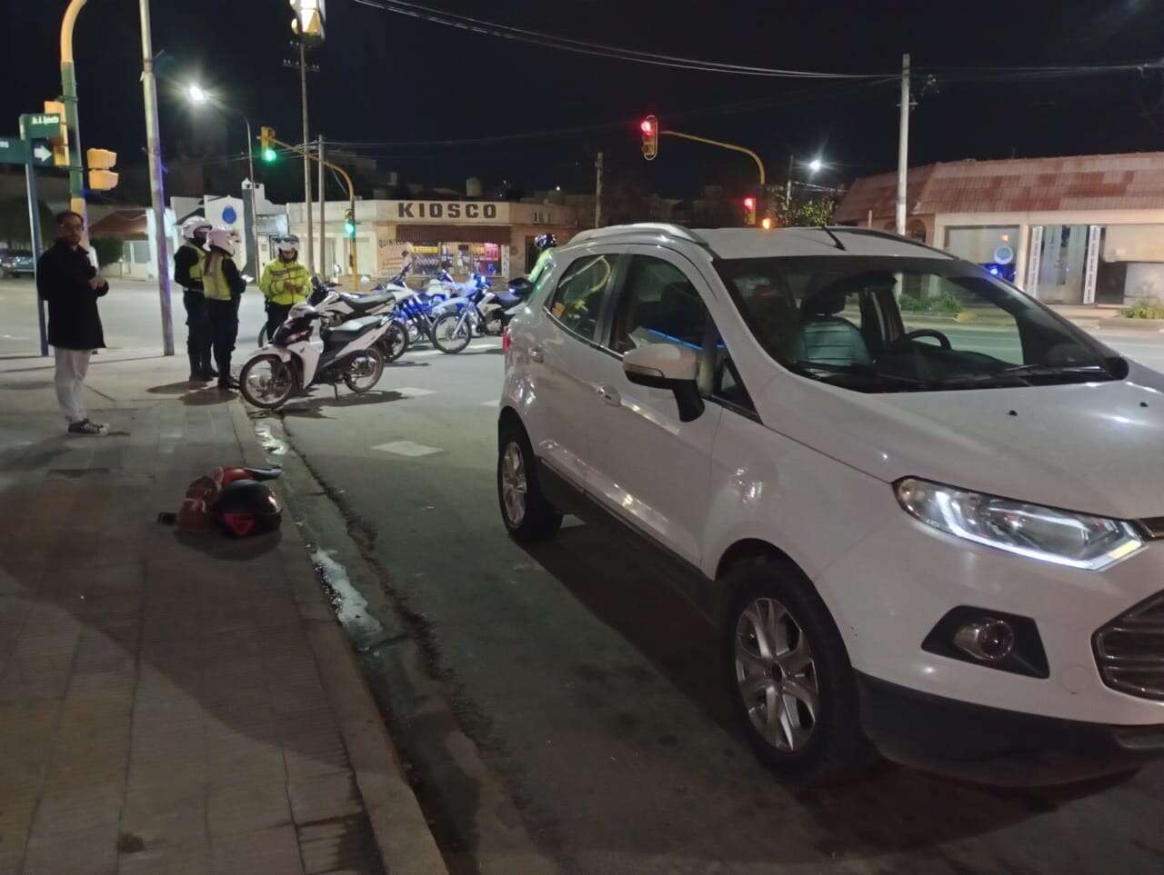 El control de alcoholemia del conductor de la camioneta dio negativo. En tanto la moto fue retenida por no poseer licencia de conducir, seguro obligatorio, sin espejos retrovisores y tener caño de escape no reglamentario.