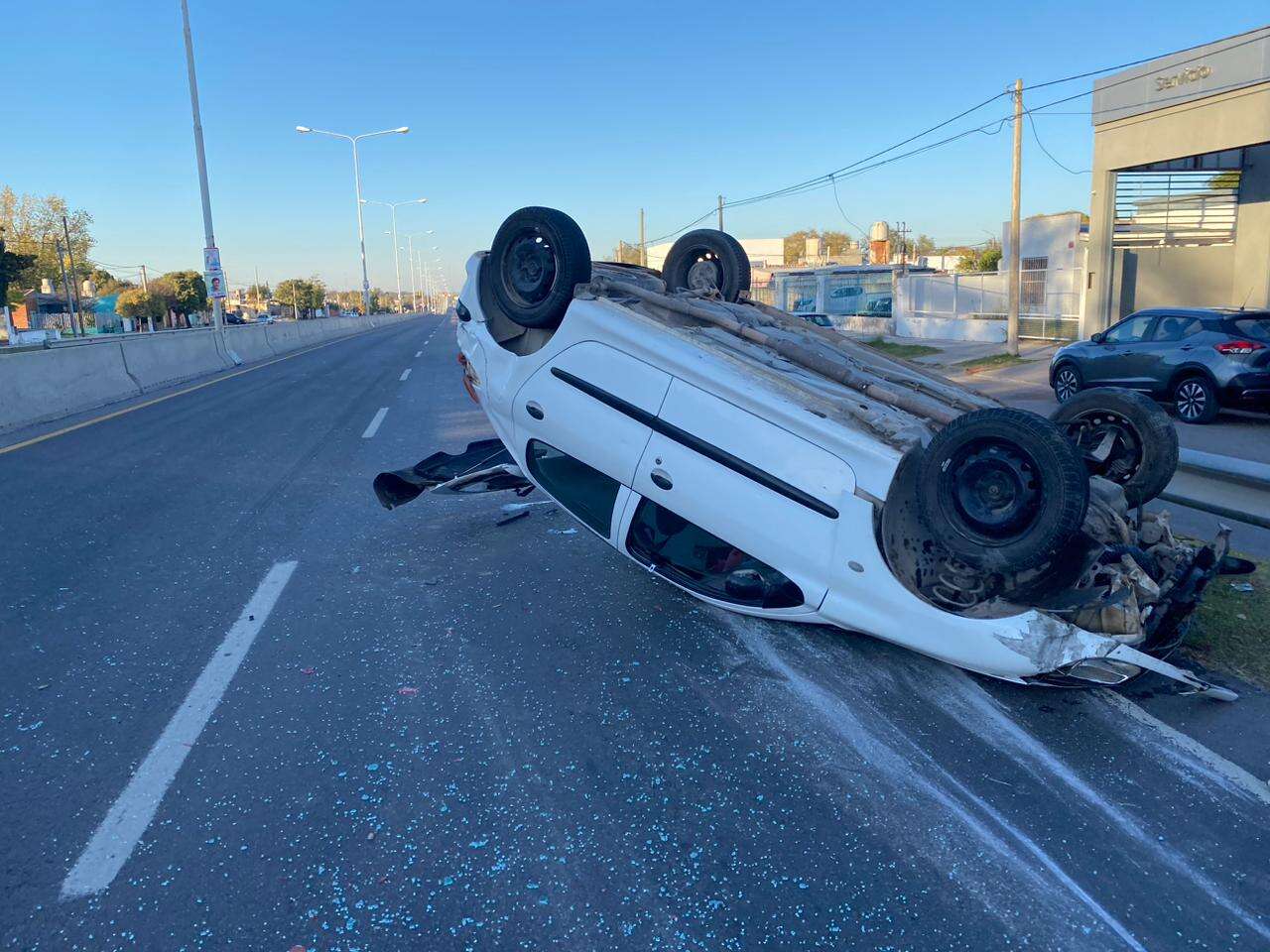 Un auto volcó este lunes a la mañana en la Avenida Circunvalación, al este de Santa Rosa. El siniestro ocurrió a las 8:40 horas e involucró a un Peugeot 206.