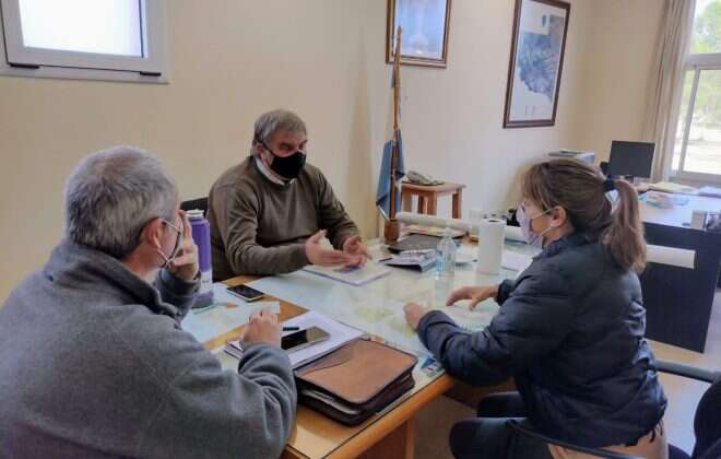 El presidente del Ente Provincial del Río Colorado, Enrique Schmidt se reunió con los coordinadores del INTA, María Luján Masseroni y  Dardo Fontanella, para analizar la situación hídrica actual del río Colorado y las acciones a planificar para el segundo semestre del año.