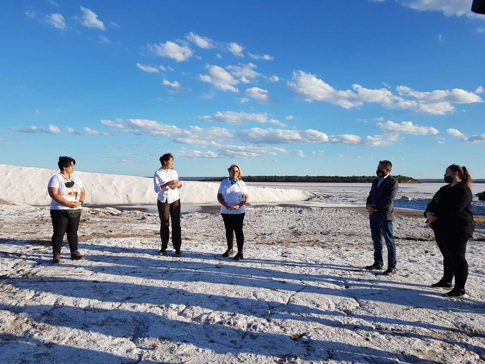 La inauguración del primer circuito turístico educativo salinero de La Pampa responde a un trabajo mancomunado entre el municipio de la localidad de General San Martín, la Secretaría de Turismo, la Secretaría de Energía y Minería, y productores mineros locales.