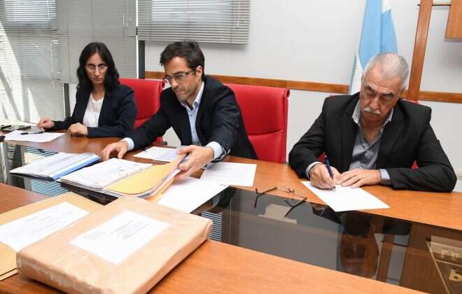 El acto licitatorio estuvo encabezado por el presidente de la DPV, Jorge Etchichury, junto a la representante de la Dirección Principal de Estudios y Proyectos, Virginia Giai, y Matías Regazzoli en representación de la Dirección Principal de Asuntos Legales.