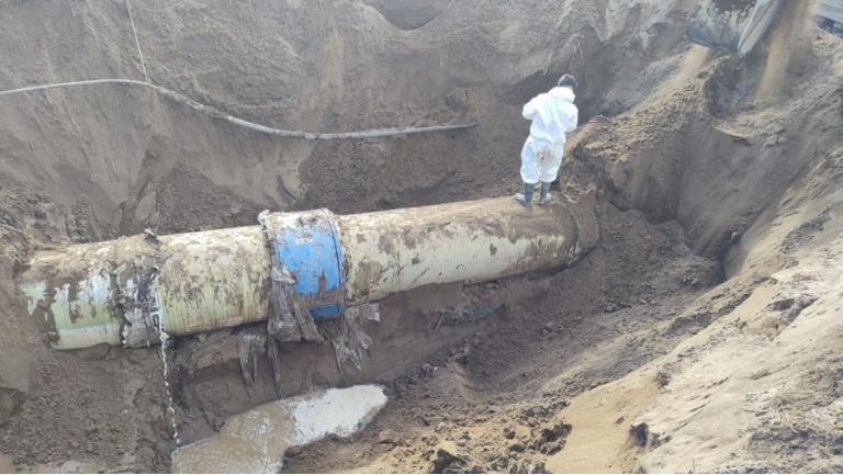 La rotura se había producido en la progresiva 97.630 de la traza del acueducto, a unos 166 kilómetros de Santa Rosa, en una cañería de PRFV de 1000 milímetros de diámetro. Una cuadrilla de Aguas del Colorado trabajó en la zona para resolver la contingencia.