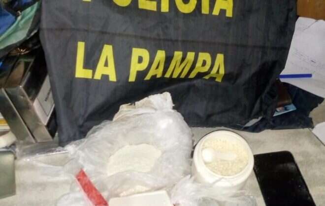 Durante los procedimientos realizados en un sector de la ciudad de Santa Rosa, extendidos por la jueza María Florencia Maza, se detectó la presencia de una mochila con un envoltorio que contenía un trozo compacto de cocaína de 513 gramos, un recipiente plástico con 203 gramos de cocaína y otros dos envoltorios con 173 y 4 gramos de la misma sustancia. También se halló una balanza de precisión.
