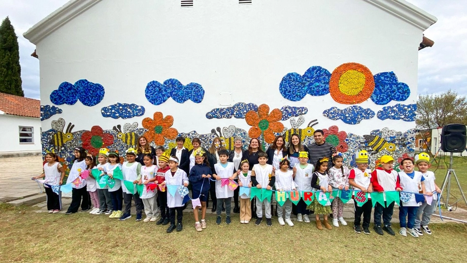 Victorica: inauguraron un mural con más de 20 mil tapitas recicladas en la Escuela Nº 7