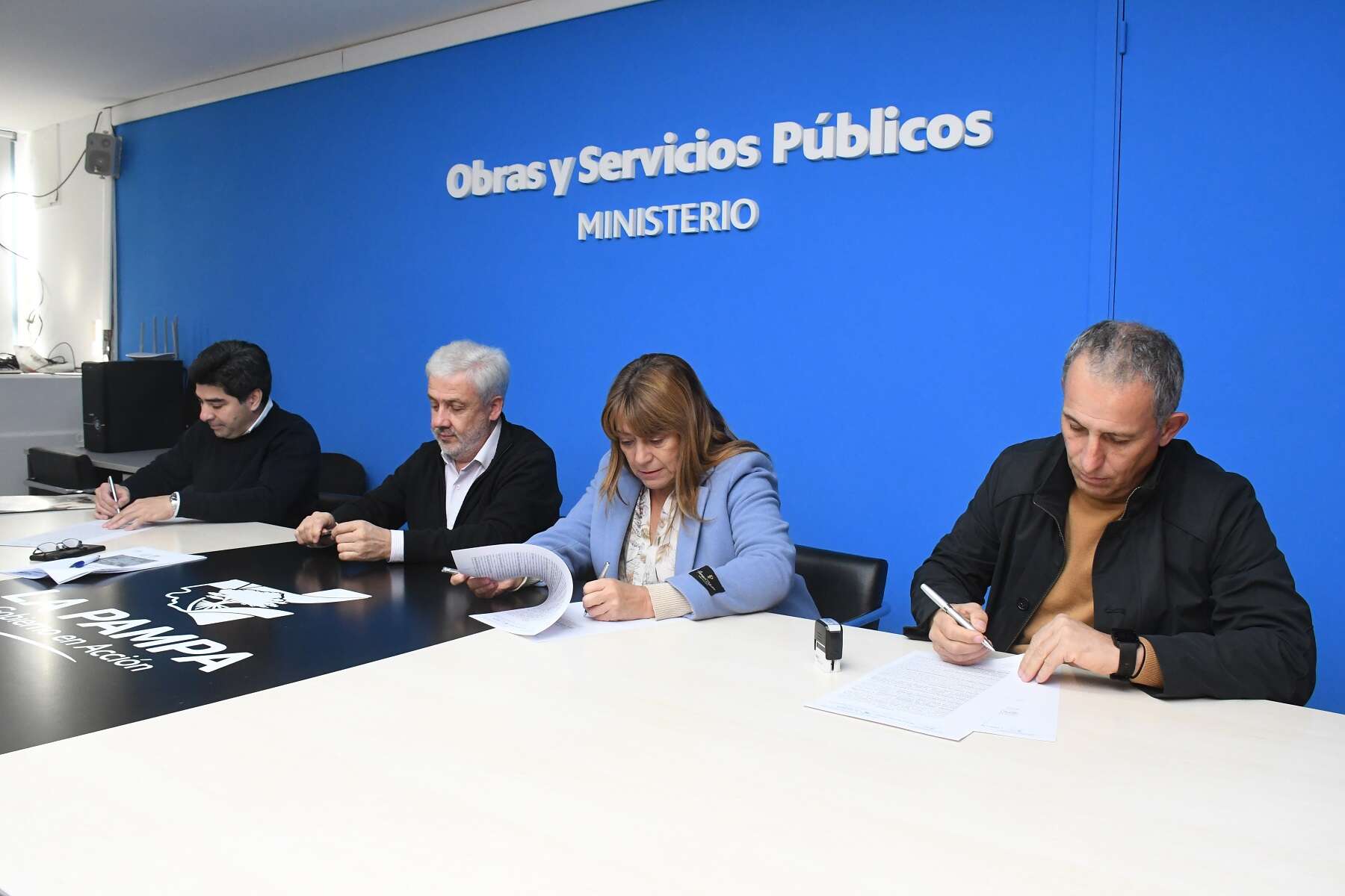 En el Ministerio de Obras y Servicios Públicos tuvo lugar el acto administrativo para el inicio de la obra de la Red de Desagües Cloacales y Planta de Tratamiento de Winifreda, del cual participaron el ministro Julio Rojo, la intendenta Adriana García, el administrador de la APA, Fabricio González Martín y Pablo Pessi por la empresa ECOP Construcciones, que hará los trabajos. La obra cuenta con un presupuesto oficial actualizado de $ 1.836.357.324,94 y un plazo de trabajo de 540 días corridos.