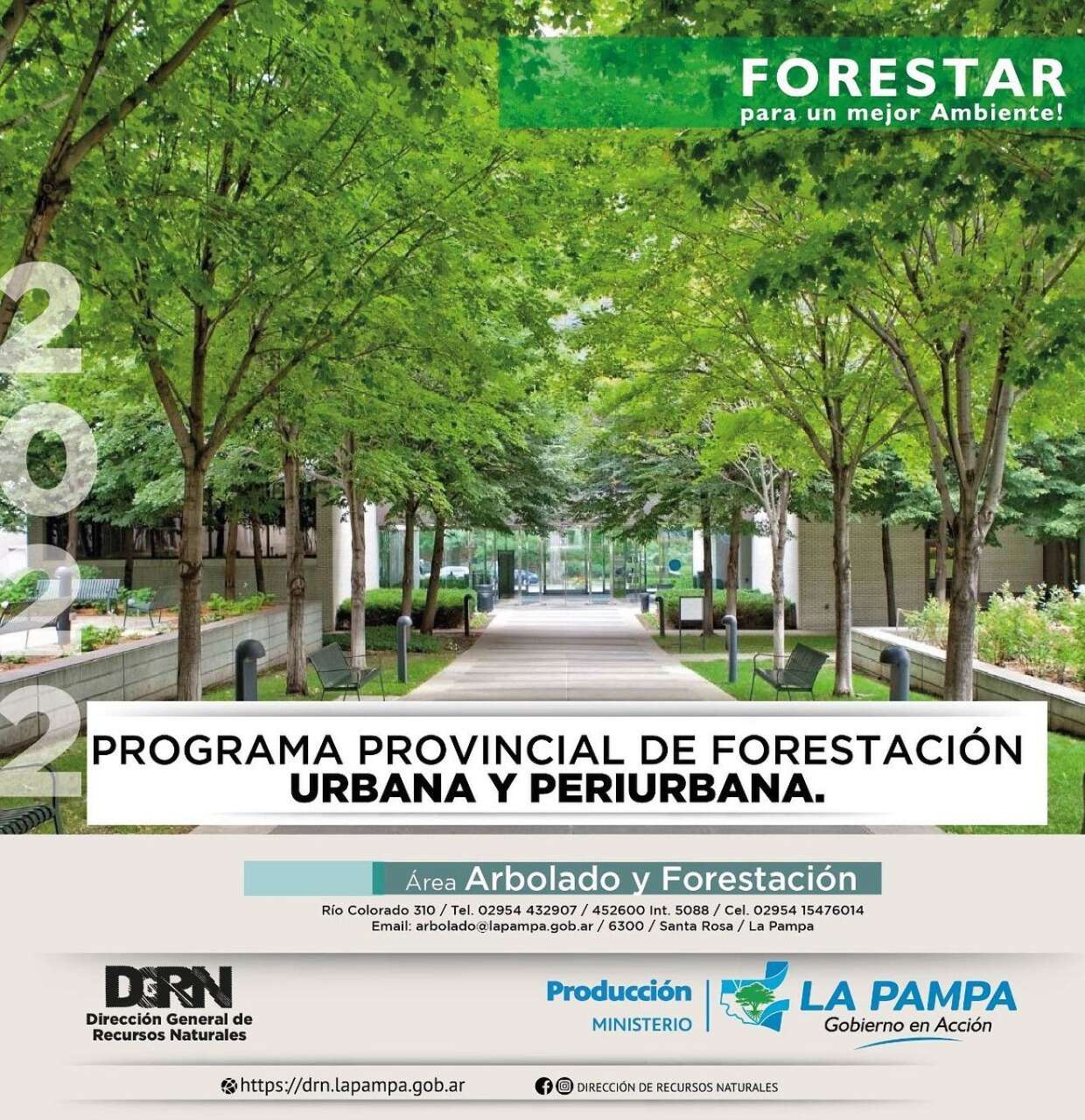 La Dirección General de Recursos Naturales del Ministerio de la Producción lleva a cabo un plan para forestar los espacios públicos en toda la provincia, el cual se rige a través del Programa de Forestación Urbana y Periurbana 2022.