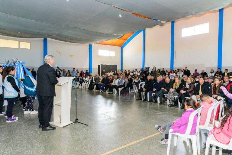 El acto que se realizó esta mañana en el Polideportivo local estuvo cargado de emoción. Alumnos de todos los niveles, docentes y vecinos le dieron marco al encuentro donde el anfitrión, el intendente Oscar Gatica, recibió al primer mandatario pampeano; jefes comunales de la región; el titular de la cartera de Recursos Hídricos José Gobbi y demás funcionarios provinciales y municipales.