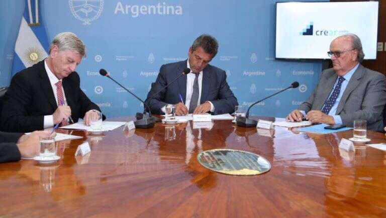 El gobernador Sergio Ziliotto firmó, con el ministro de Economía de Nación, Sergio Massa y el secretario de Industria, José Ignacio De Mendiguren, un convenio por el cual La Pampa se suma al programa Crédito Argentino (CreAr) que pondrá a disposición de las PyMEs $ 1.000 millones. El Gobierno provincial sumará, con recursos propios, 5 puntos porcentuales al subsidio de 25 puntos porcentuales dispuesto por Nación para esta operatoria.