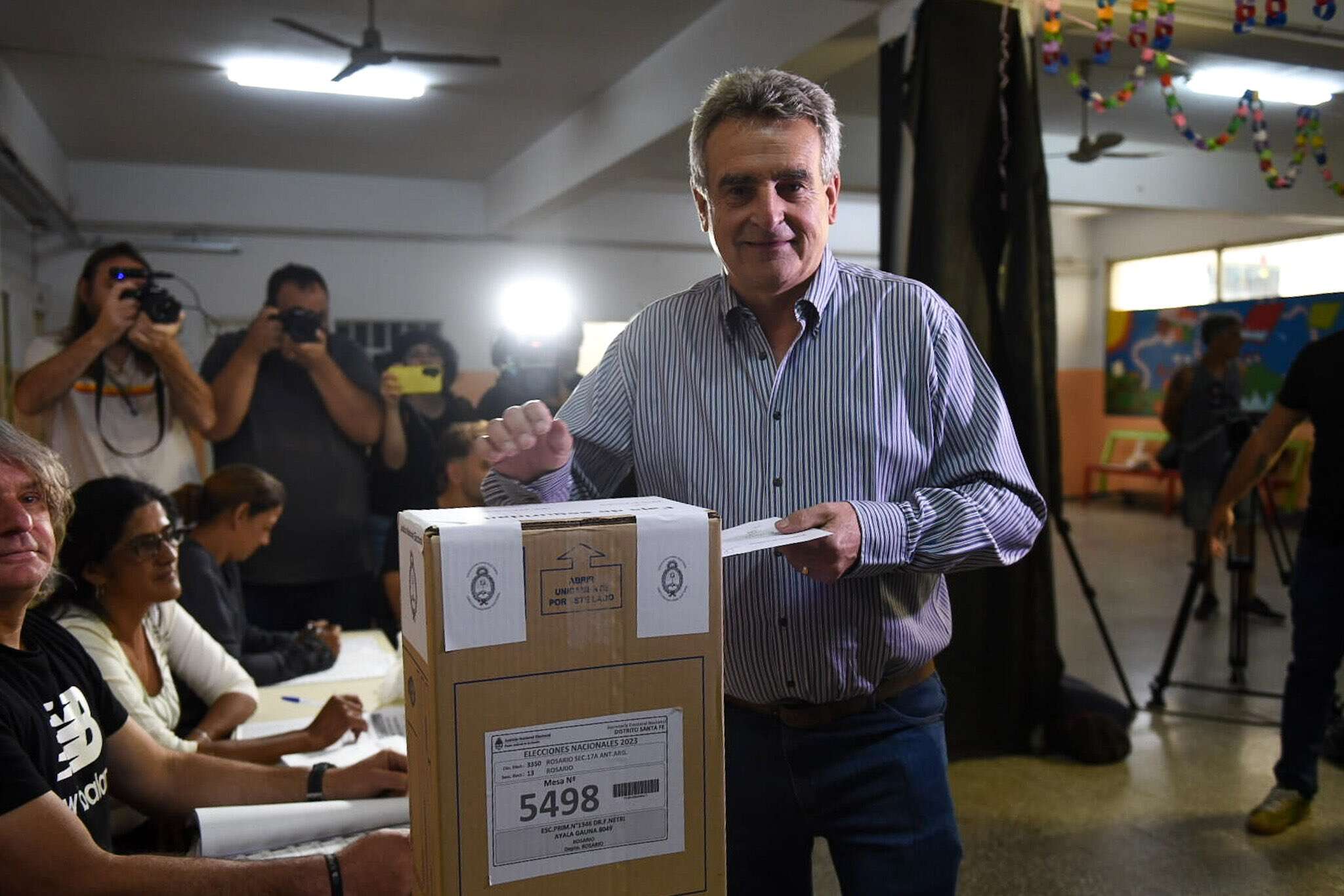 El candidato a vicepresidente de Unión por la Patria (UxP), Agustín Rossi, emitió su voto apenas pasadas las 10 de la mañana en un colegio de la ciudad de Rosario, de donde es oriundo.