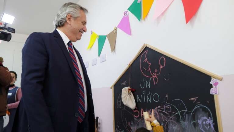 El presidente Alberto Fernández encabezó la inauguración del primero de 120 Espacios de Primera Infancia que construirá hasta fin de año el Gobierno nacional y sostuvo que la “prioridad” de su gestión está puesta en las “familias argentinas”.