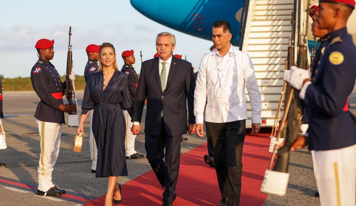 El mandatario viajó acompañado por la primera dama Fabiola Yánez, el canciller Santiago Cafiero, el secretario General de la Presidencia, Julio Vitobello; y la portavoz Gabriela Cerruti.