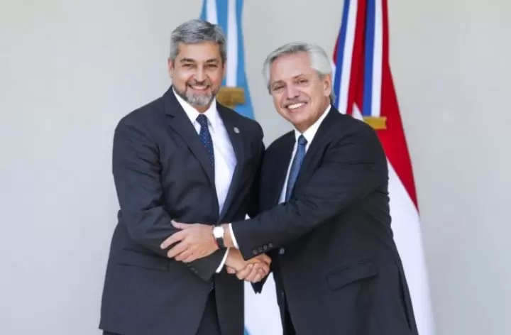 El presidente Alberto Fernández recibió hoy a su par de Paraguay Mario Abdo Benítez en una bilateral que tuvo lugar en la quinta de Olivos. Se trató de una reunión de trabajo, que se generó a pedido del primer mandatario paraguayo, y que posibilitó el análisis de las relaciones externas del Mercosur y los avances en el marco de la negociación con la Unión Europea (EU).