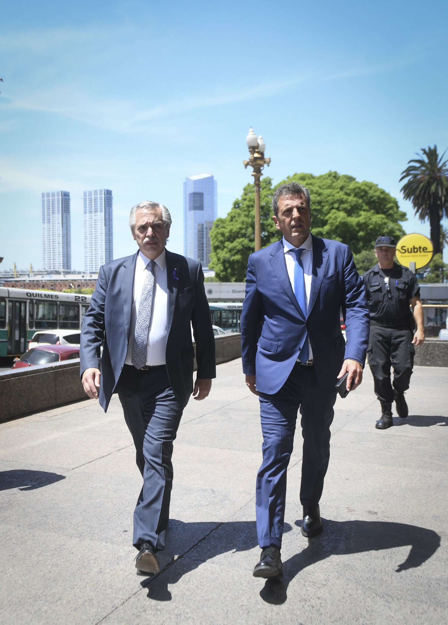 Poco después del mediodía, fuentes oficiales dieron cuenta del encuentro entre Fernández y Massa. El Presidente cruzó la calle Hipólito Yrigoyen que separa la Casa Rosada de la sede del Ministerio de Economía, para compartir un almuerzo en el despacho del titular de la cartera. Allí ambos analizaron la situación económica. Uno de los temas fue la iniciativa de reproducir la segunda versión del “dólar soja”, con el objetivo de acelerar la liquidación de las exportaciones de la oleaginosa. Todo en medio de la inestabilidad cambiaria que empujó fuertemente la cotización del “dólar blue”.