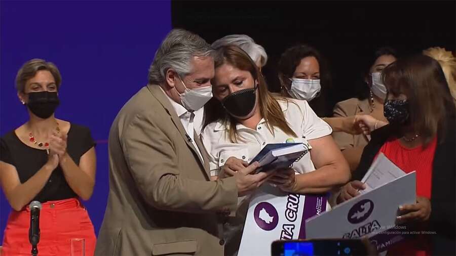 En el marco de la conmemoración del Día Internacional de la Mujer, que se celebra el martes 8 de marzo, y ante el auditorio femenino que colmó la Sala Argentina del CCK, el mandatario habló de educación, federalismo e igualdad de género y defendió sus políticas sanitarias durante la pandemia de coronavirus y el reciente acuerdo de Argentina con el Fondo Monetario Internacional (FMI).