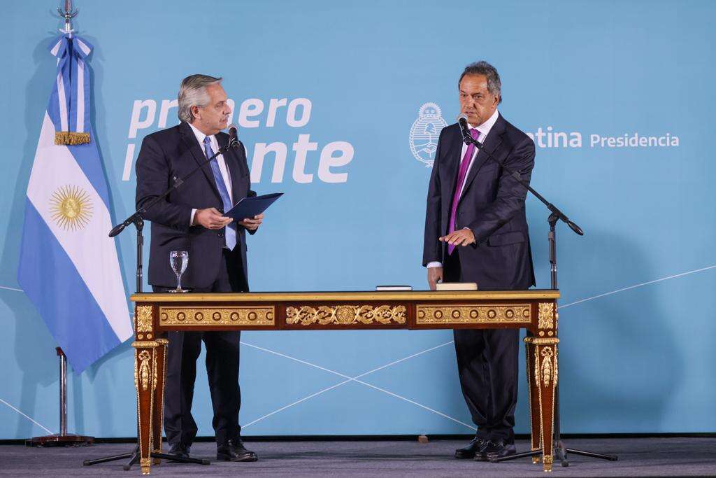El Presidente, Alberto Fernández, le tomó juramento al nuevo ministro de Desarrollo Productivo, Daniel Scioli, esta tarde en la Casa Rosada.