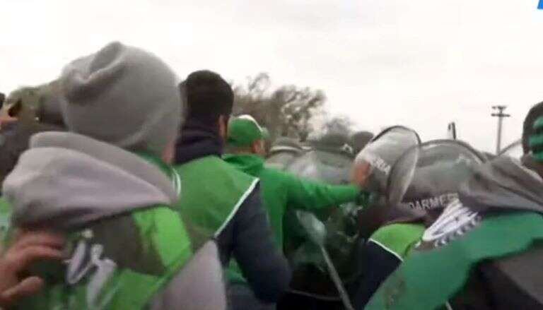 La fuerza avanzó sobre los manifestantes y tiró gas lacrimógeno para liberar la zona. “Tiene que saber que no es bienvenido aquí ni en ninguna otra”, se quejó el secretario general del sindicato, Rodolfo Aguiar.