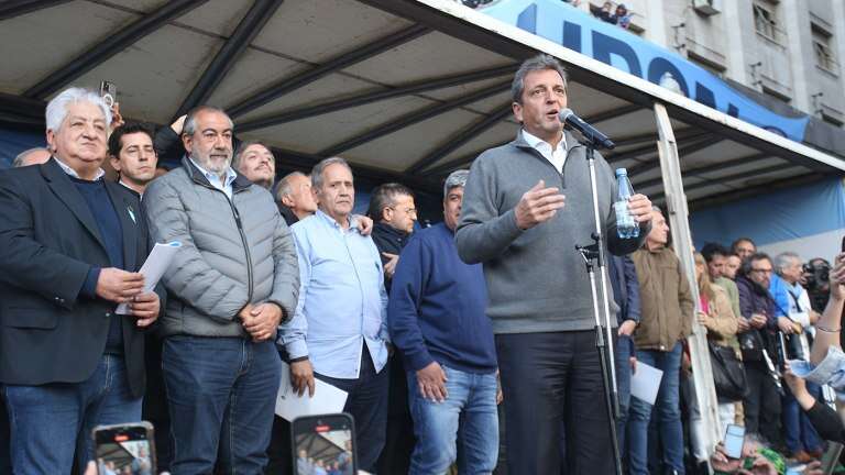 La medida regirá desde octubre vía decreto. Sergio Massa se dirige a la militancia luego de reunirse con la cúpula de la CGT, CTA, la ministra de Trabajo, Kelly Olmos, legisladores y diversos dirigentes gremiales.