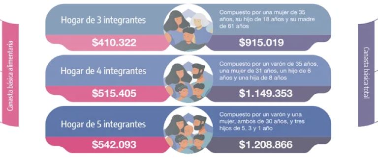 Por último, un hogar compuesto por cinco personas demandó un total $547.482 para la CBA y $1.220.885 para la CBT.