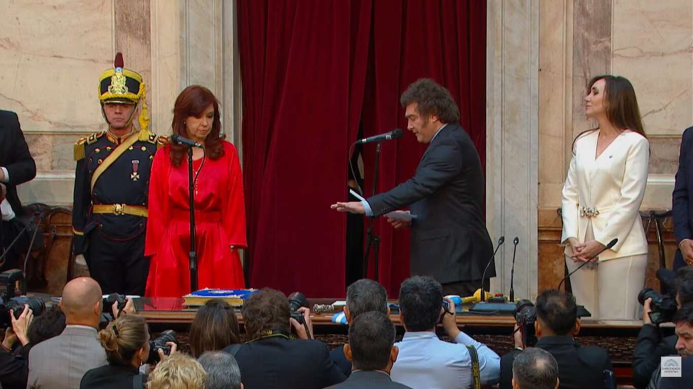 Aún resta definir el horario del inicio del acto, que no está confirmado. Se prevé que será entre las 11 y 12 del mediodía. Después de la jura, Javier Milei va a protagonizar la ceremonia de traspaso de mando donde el mandatario saliente Alberto Fernández le debe entregar los atributos de la banda y el bastón presidencial al nuevo jefe de Estado.