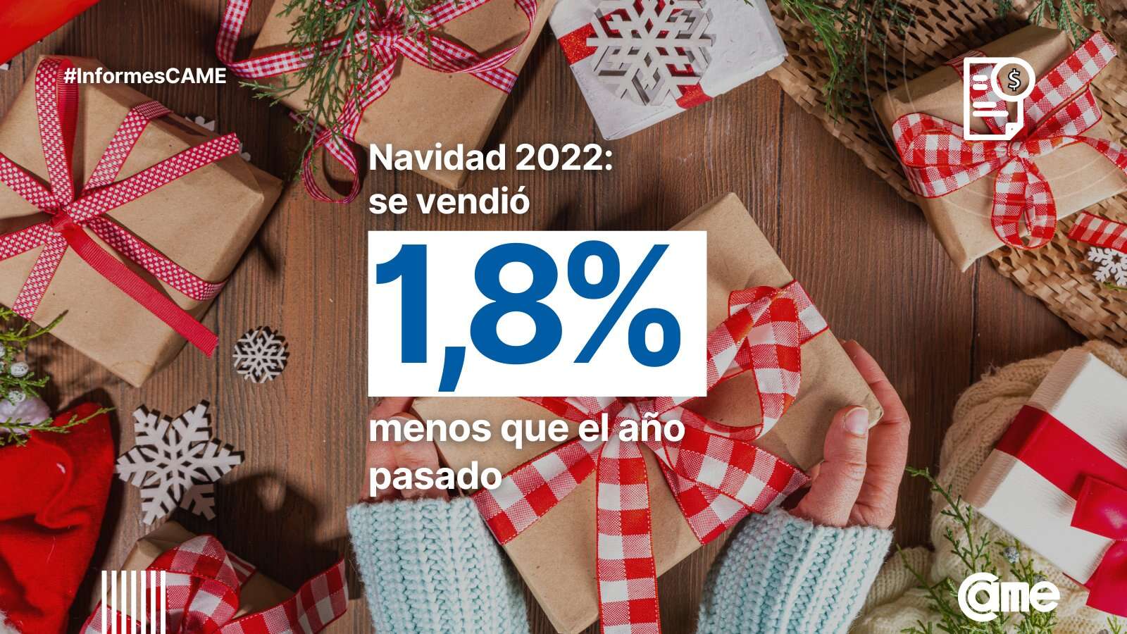 Las ventas navideñas en los comercios minoristas pymes bajaron 1,8% en términos reales (esto es, descontada la inflación) respecto de la Navidad del año pasado, informó la Confederación Argentina de la Mediana Empresa (CAME).