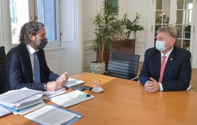 El gobernador, Sergio Ziliotto, se reunió hoy en Casa Rosada con el jefe de Gabinete de Ministros, Santiago Cafiero para conversar sobre distintos temas, entre ellos, el importante avance de la campaña de vacunación y los signos de reactivación de la economía a nivel provincial y nacional.