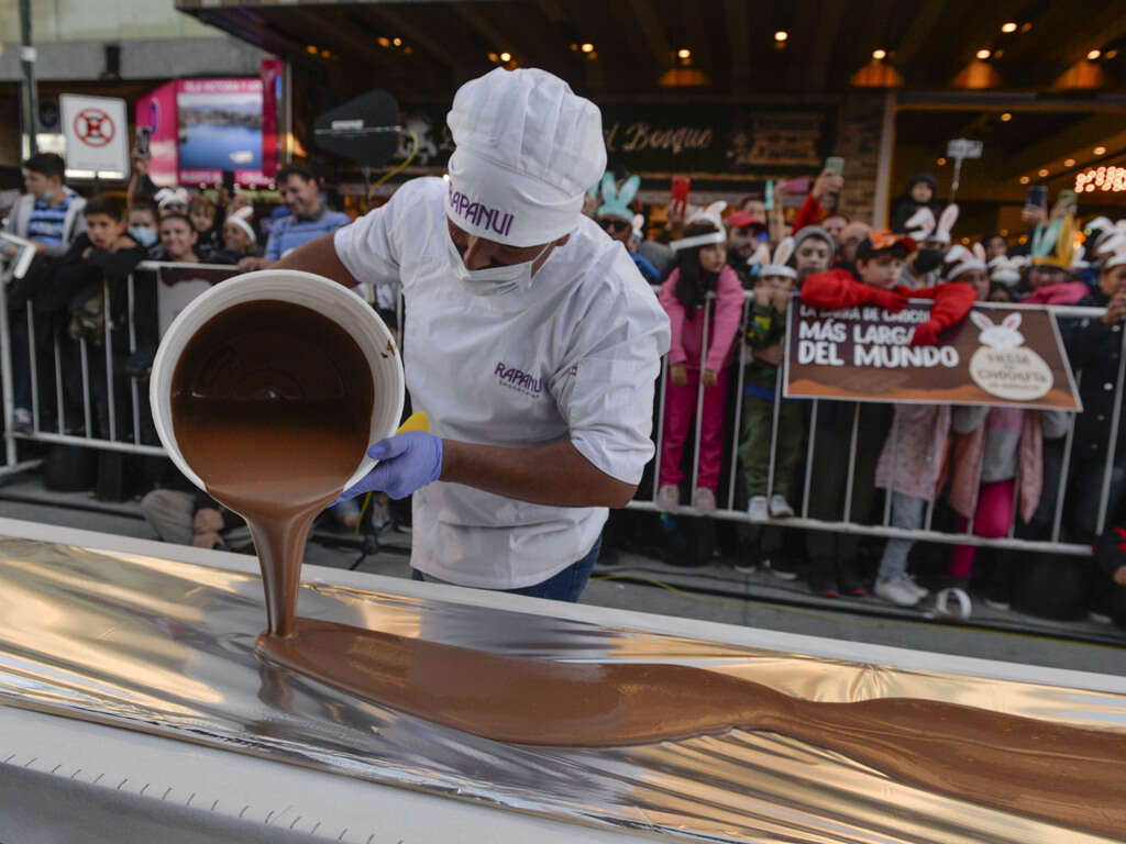 Miles de vecinos y turistas se reunieron en el centro de San Carlos de Bariloche para ver y probar la barra de chocolate “más larga del mundo”, elaborada por 150 trabajadores que utilizaron 1.500 kilogramos de materia prima y lograron un producto de 210 metros de largo.