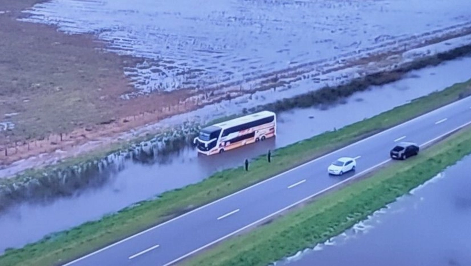 El vehículo, con unos 40 pasajeros a bordo, quedó con las ruedas cubiertas de agua y fue necesario rescatarlos con lanchas. Personal de emergencia los trasladó a otro colectivo para continuar viaje hacia destino. No se registraron heridos ni víctimas.